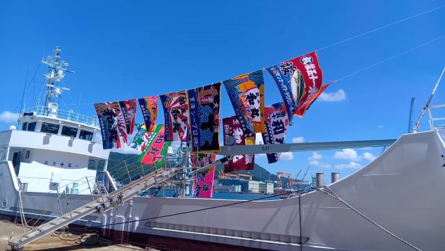 道交法により本艇はトレーラーによる陸送が出来ないため、造船所である大分県の「ヤンマーマリンインターナショナルアジア株式会社」の桟橋にて引渡しとなりました。
